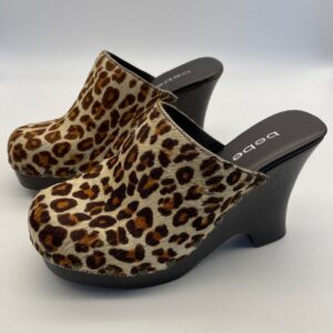 AS-IS LEOPARD PRINTED LEATHER CLOGS SOLID WOOD HEEL MADE IN SWEDEN
