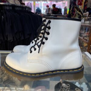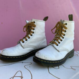 DR MARTEN WHITE LEATHER LACE UP COMBAT BOOTS GUM SOLE