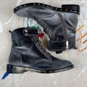 VINCE CAMUTO TALORINI STUDDED VELVET LACEUP COMBAT STYLE BOOTS