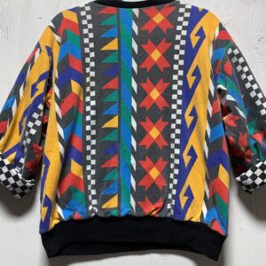 RADICAL 1980S-90S REVERSIBLE ABSTRACT CHECKER PRINT CREWNECK PUFFY SWEATSHIRT