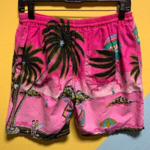 PINK TROPICAL BEACH PRINT LINED COTTON BATHING SUIT SHORTS