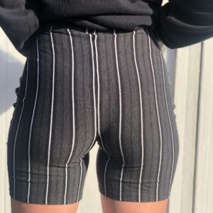 DEADSTOCK 1990S PINSTRIPE DRAWSTRING ELASTIC COTTON BIKER SHORTS