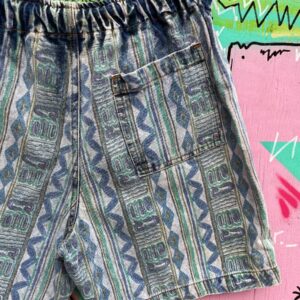 FUNKY 90S ETHNIC PRINT DENIM SHORTS WITH CINCH WAIST AND DRAWSTRING