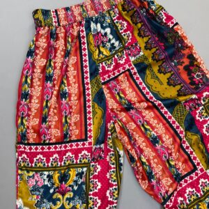 SUPER CUTE! VIBRANT PRINTED VELVET HAREM STYLE PANTS ELASTIC WAIST & TASSEL DRAWSTRING