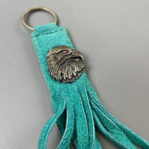 1990S DETAILED BALD EAGLE PENDANT SUEDE LEATHER LONG FRINGE BIKER KEYCHAIN