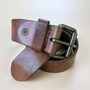 HEAVY WIDE LEATHER BELT EMBOSSED EAGLE DESIGN BRASS ROLLER BUCKLE