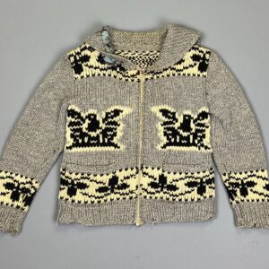 AS-IS EAGLE DESIGN CHUNKY KNIT WOOL ZIP UP COWICHAN CARDIGAN SWEATER FLAP COLLAR