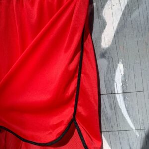 SHEER RED ELASTIC WAIST & BLACK TRIM SHORTS