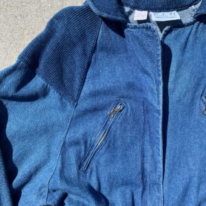 KILLER 1990S DENIM ZIP UP COTTON JUMPSUIT RIBBED COLLAR & CUFF ELASTIC WAIST