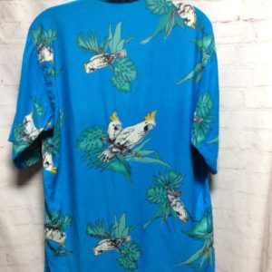 SOFT FLOWY RAYON FABRIC W/ TROPICAL FOLIAGE & COCKATOO BIRD DESIGN SHIRT