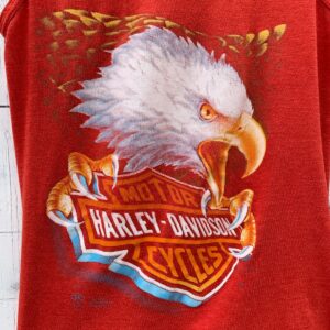CLASSIC 1990S HARLEY DAVIDSON EAGLE FLY RED MOTORCYCLE GRAPHIC 1996 T-SHIRT LARGE HD EMBLEM BACK HIT
