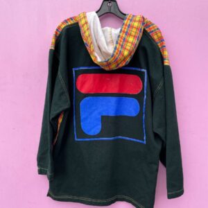 SUPER RARE 1990S PLAID COLOR BLOCK BOOTLEG FILA HOODED PONCHO FRONT KANGAROO POCKET