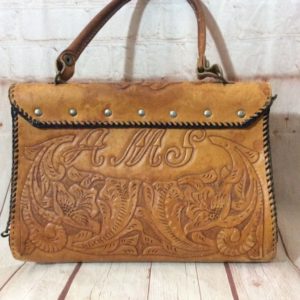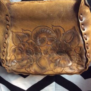 VINTAGE HANDBAG – LEATHER – TOOLED – FLAP CLOSURE – SINGLE STRAP