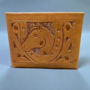 AMAZING LEATHER HAND TOOLED HORSE DESIGN LEATHER WALLET BILLFOLD PHOTO INSERT INCLUDED *ORIGINAL BOX