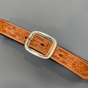 HAND-TOOLED FLORAL SCROLL LEATHER BELT WITH LEATHER BUCKLE