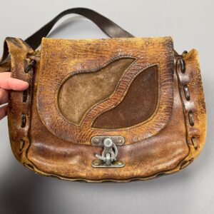 GORGEOUS! HEAVILY DISTRESSED HANDMADE TOOLED LEATHER LATCH CLOSURE SHOULDER BAG