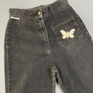 1970S SOFT BRUSHED COTTON HIGH WAISTED FLARE LEG PANTS BUTTERFLY APPLIQUE ACCENTS
