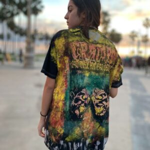 CUTOFF SLEEVE HAND PAINTED CRAMPS BAD MUSIC FOR BAD PEOPLE HAND PAINTED T-SHIRT W/ POCKET