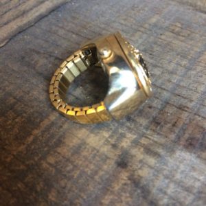 1980S GEOMETRIC ONYX INLAY DESIGN RING *STAMPED ON INSIDE