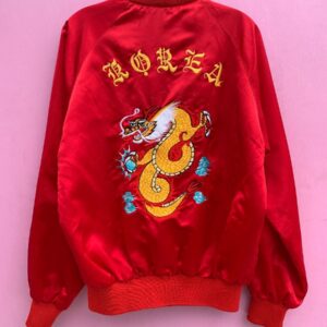 SATIN SUKAJAN TOUR JACKET W/ EMBROIDERED DRAGON + KOREA LETTERING EMBROIDERED CAROLINE NAME
