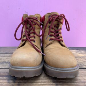 BRUSHED LEATHER LACE-UP WORK BOOTS KNIT TOP