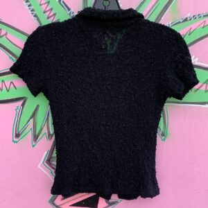 SOO CUTE!!! 1970S LACE TRIM STRETCHY RIBBED TOP RUCHED FRONT