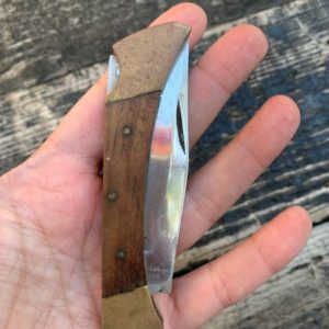 LARGE WOOD HANDLE POCKET KNIFE BRASS DETAIL