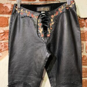 GORGEOUS WHIPPED STITCHED LEATHER FLORAL EMBROIDERED PANTS LACE UP FRONT