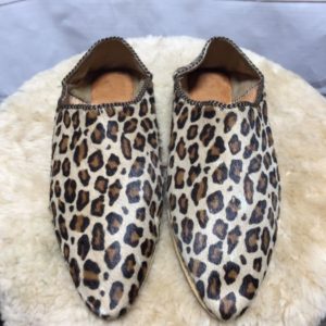 LEOPARD PATTERN PINY HAIR MOROCCAN SLIP ON BABOUCHE POINTY TOE SLIP ON SHOES – AS IS