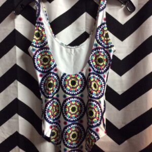 BATHING SUIT – ONE PIECE W/MEDALLION PRINT DESIGN