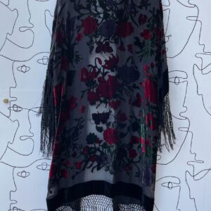 FLORAL FLOCKED VELVET SHEER BURNOUT KIMONO W/ TASSEL TRIM