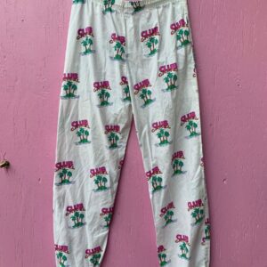 AWESOME 1980S CLUB CAMEL PALM TREE LOUNGE PANTS WITH STRETCHY DRAWSTRING WAIST