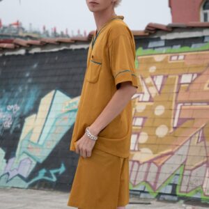AWESOME GEOMETRIC PRINT OPEN TERRY CLOTH LINED VEST & SHORTS LOUNGE WEAR SET