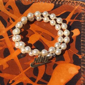 PEARL WRAP BRACELET / CHOKER NECKLACE W/ SOLID BRASS NIKE CHARM