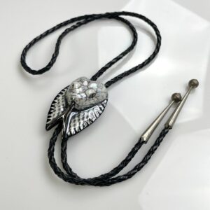 INTRICATE KACHINA FIGURINE BOLO TIE NECKLACE BRAIDED LEATHER CORD BOLERO