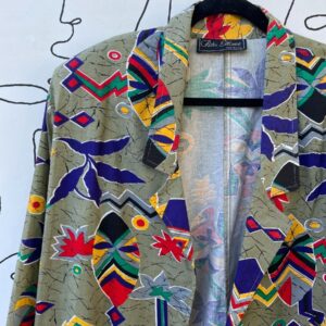 FUNKY GEOMETRIC TIKI PRINT COLLARED OPEN FRONT LONG SLEEVE COTTON BLAZER JACKET