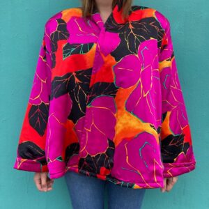 100% SILK TROPICAL FLORAL PRINT JACKET QUILTED LINING SHOULDER PADS