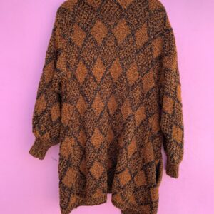 OVERSIZED ARGYLE LOOP KNIT OPEN FRONT CARDIGAN