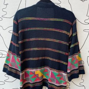 OPEN FRONT GEOMETRIC STRIPE CARDIGAN W/ BELL SLEEVES