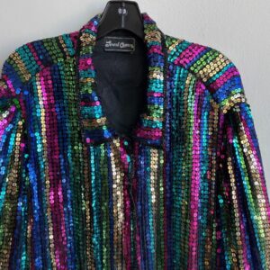 UNREAL 1980S-90S FULLY RAINBOW OVERSIZED SEQUIN JACKET SNAP BUTTONS