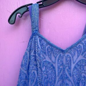 FUN! FULLY BEADED SILK LINED PARTY DRESS COLORED GEM ACCENTS
