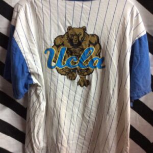 CUSTOM 1990S GEORGETOWN UNIVERSITY HOYAS 100% COTTON COLOR BLOCK PINSTRIPED BASEBALL T-SHIRT