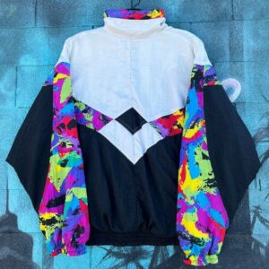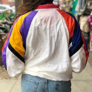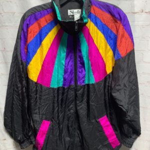 1980S WINDBREAKER JACKET W/NEON RAINBOW COLOR BLOCK DESIGN