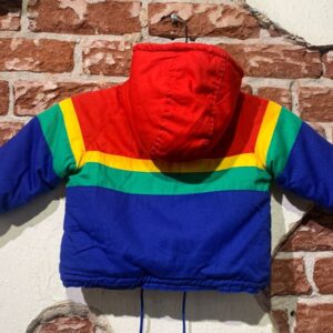 KIDS COLORBLOCK RAINBOW ZIP-UP HOODED PUFFY JACKET AS-IS