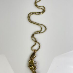 MINIATURE SOLID BRASS REPLICA PISTOL GUN REVOLVER CHARM NECKLACE, HEAVY BALL CHAIN