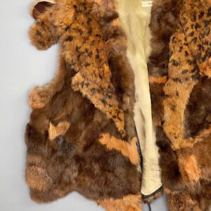 PATCHWORK RABBIT FUR VEST FULLY LINED LEATHER RIBBON TIE MADE IN HONG KONG