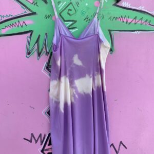 *AS-IS* 1960S TIE DIE EFFECT LILAC SLIP RIBBON TRIM DRESS