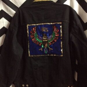 DENIM JACKET – EGYPTIAN SYMBOLS W/SEQUINS – GOLD TRIM
