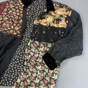 CUTE! 1990S VELVET & LACE WITH SHEER FLORAL PATCHWORK BLOUSE SEQUIN TRIM