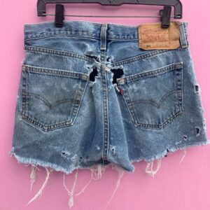 THRASHED 501 DENIM CUT OFF SHORTS LEVIS WITH SEWN IN SHEER LACE LINING